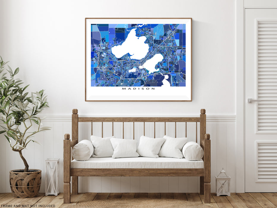 Madison City Street Map Wall Art Print Poster, Blue Geometric Madison Wisconsin Road Maps, USA