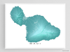 Maui Map Wall Art Print Poster, Turquoise Topographic Hawaii Island Road Maps, Lahaina, Kihei