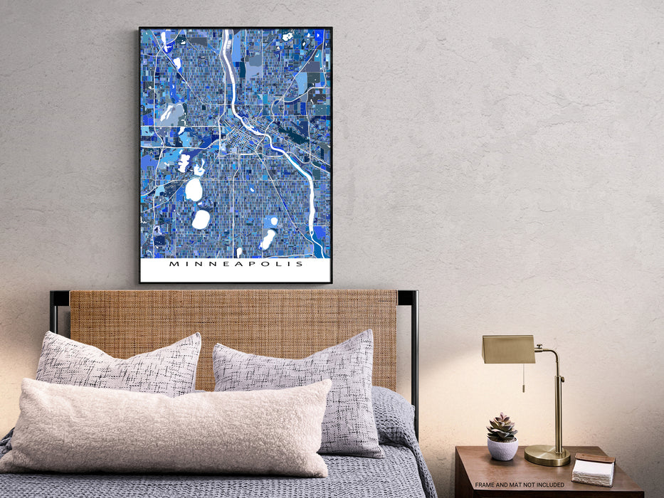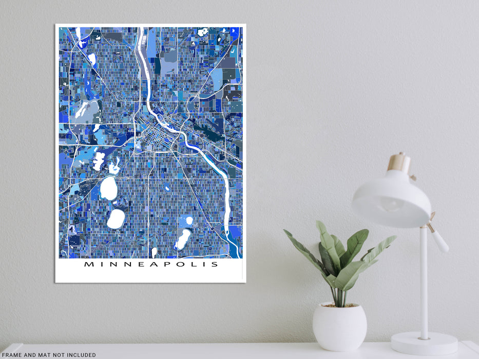 Minneapolis Map Wall Art Print, Blue Geometric Minnesota City Poster Street Maps, USA
