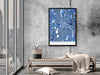 This Minneapolis map print poster features stunningly detailed city streets, water features, and thousands of blue geometric shapes to create a unique representation of the city. Perfect for decorating any space, this modern and interesting map print will be an eye-catching addition to any living space or office.