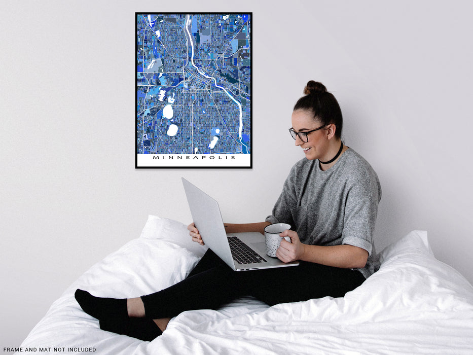 Show your appreciation for Minneapolis by displaying this beautiful artwork, and choose from different sizes - from small prints to posters. Created in-house by Maps as Art, each map is carefully constructed on premium quality papers and inks with professional grade printers.