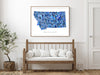Montana State Map Wall Art Print Poster with Blue Geometric Design