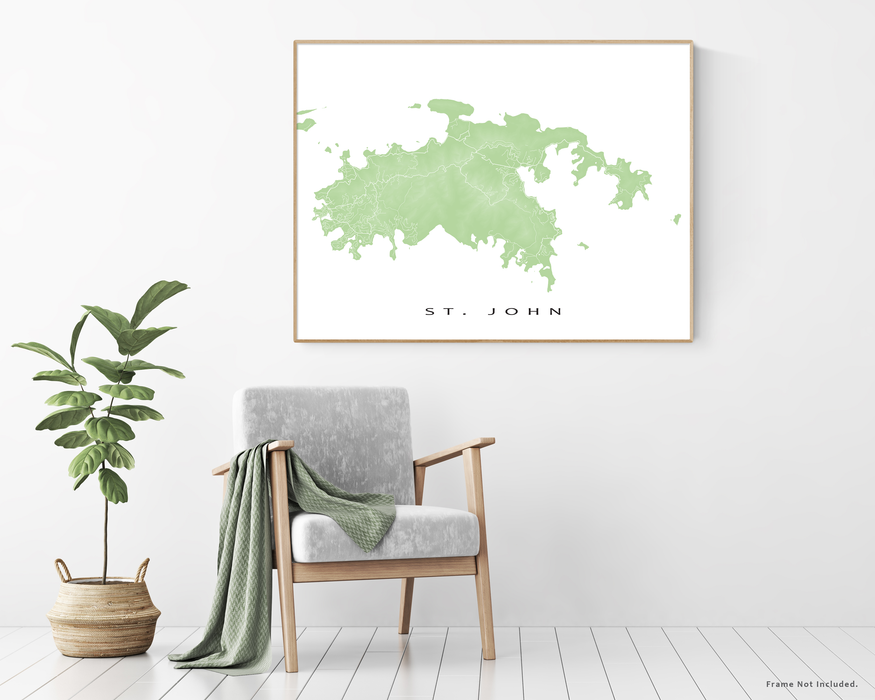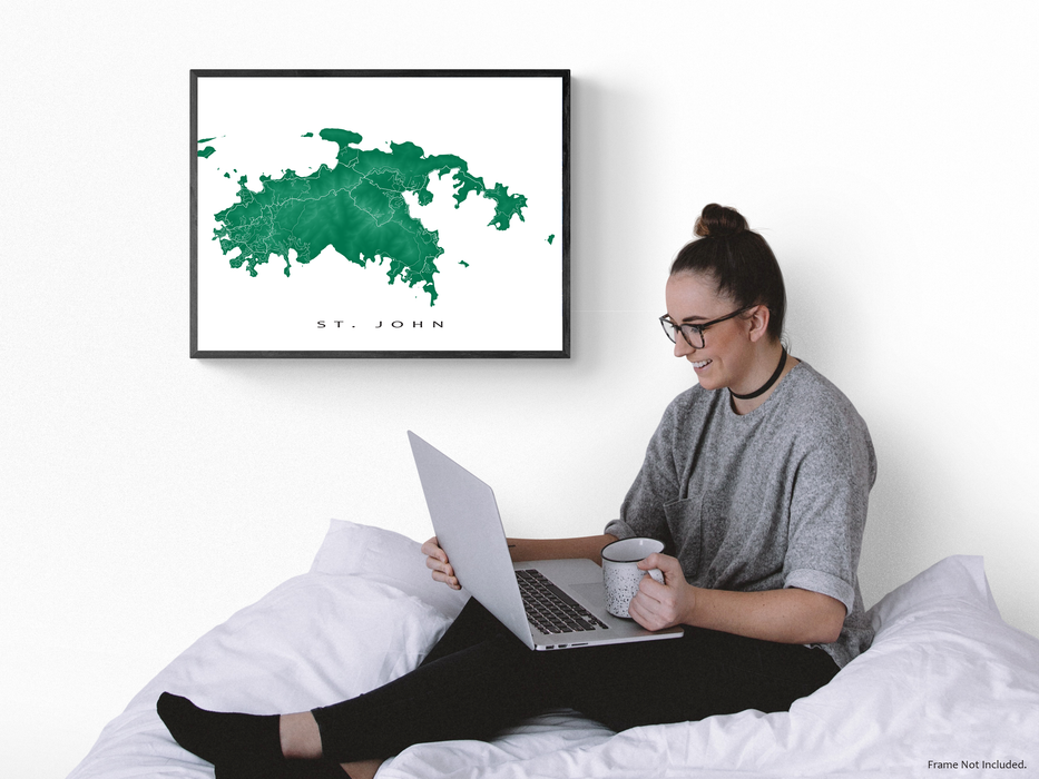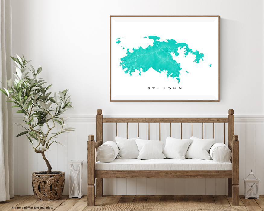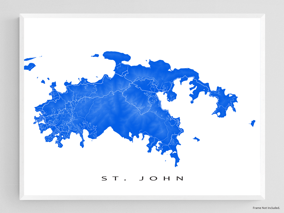 St. John Island Map Wall Art Print Poster, Topographic US Virgin Islands Poster Maps, USVI