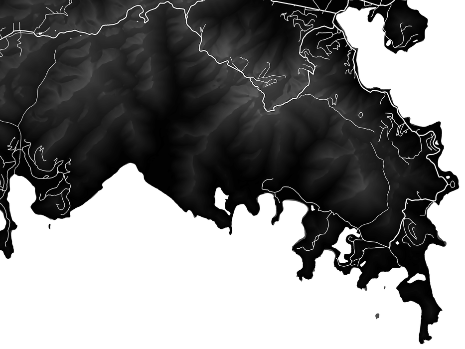 This St. John, USVI map print poster showcases the natural features of the island, including mountains, canyons, and beaches. The lighter regions on the map represent the highest elevations.