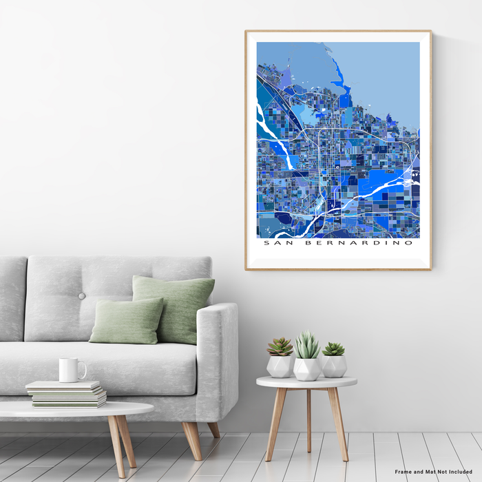 San Bernardino Map Print Poster, California Blue Geometric City Street Wall Art Maps, USA