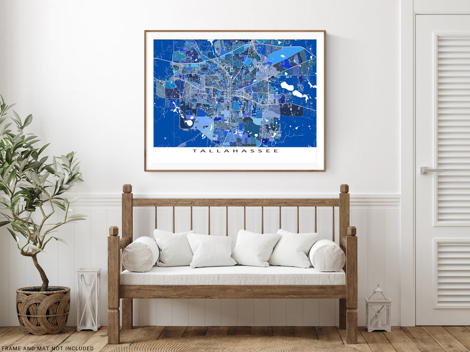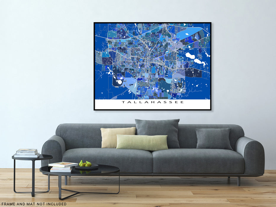 Tallahassee Florida City Street Map Wall Art Print Poster with Blue Geometric Design
