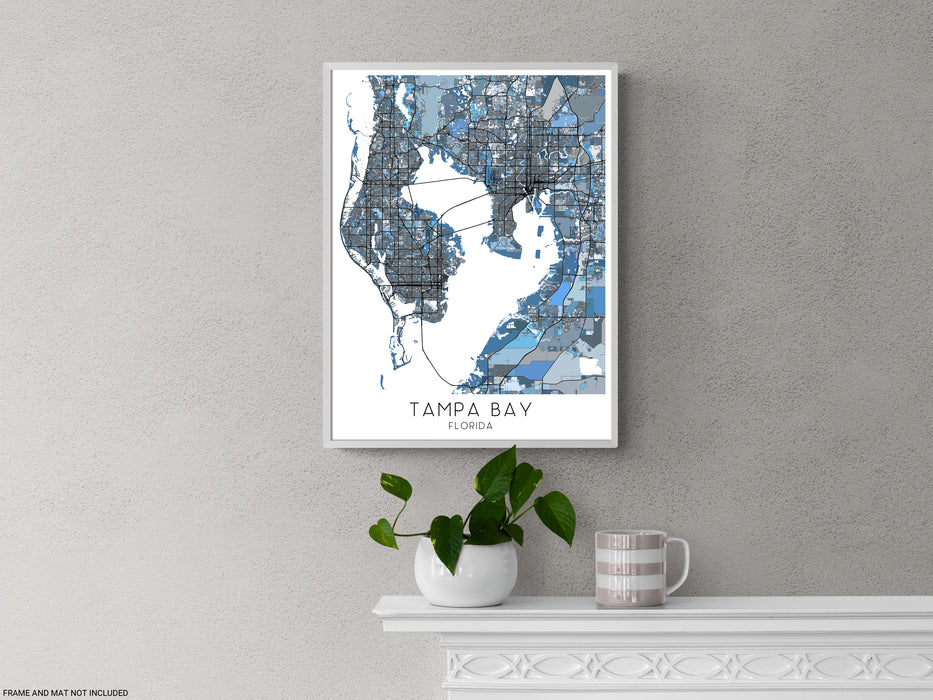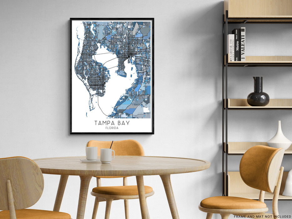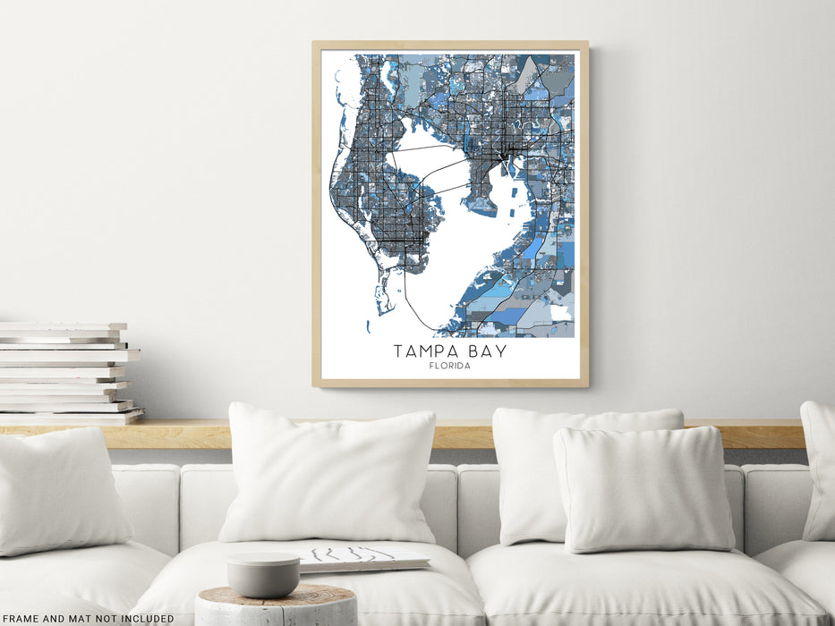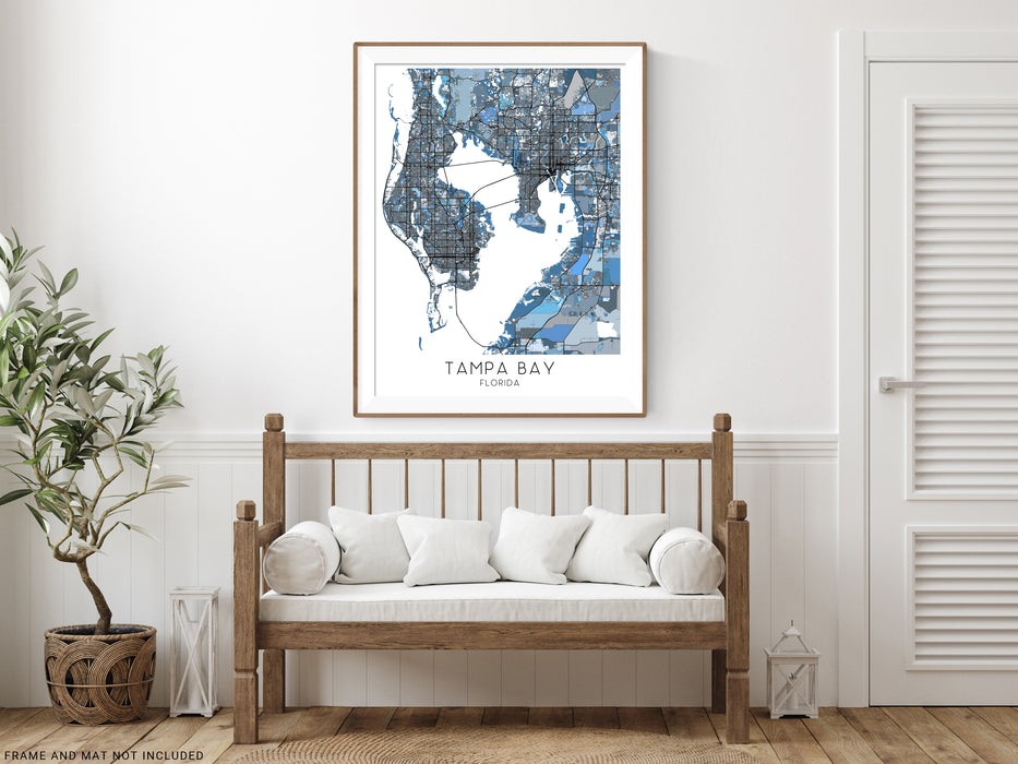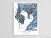 Tampa Bay Map Print Poster - Tampa Bay Wall Art Prints, Denim Blue Geometric Tampa Florida City Maps